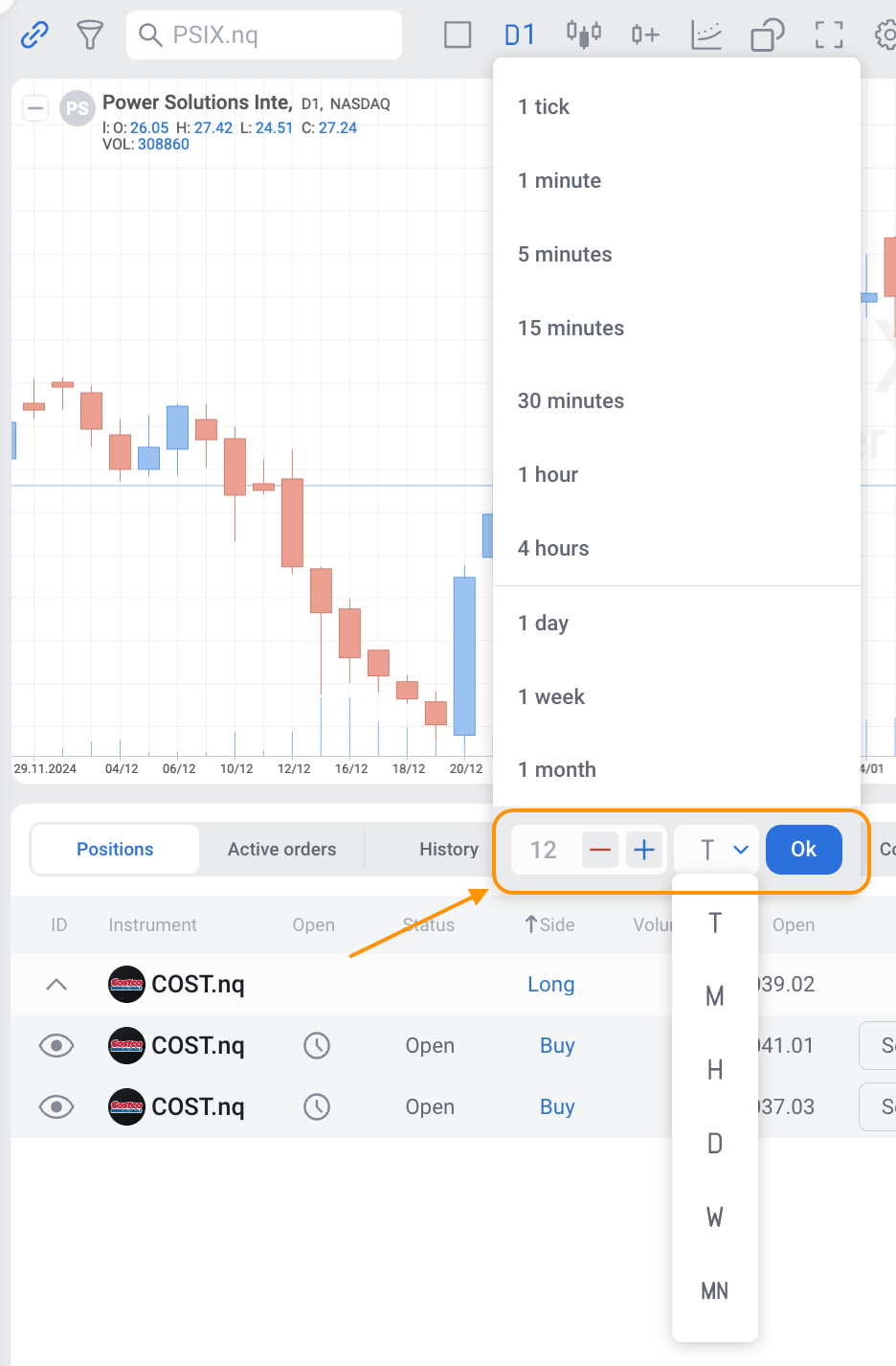 We’ll walk you through the steps to set up custom timeframes in web terminal: