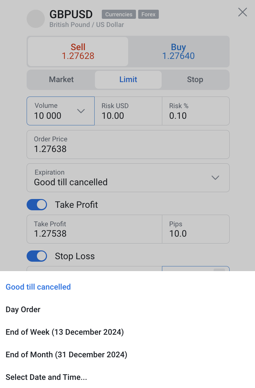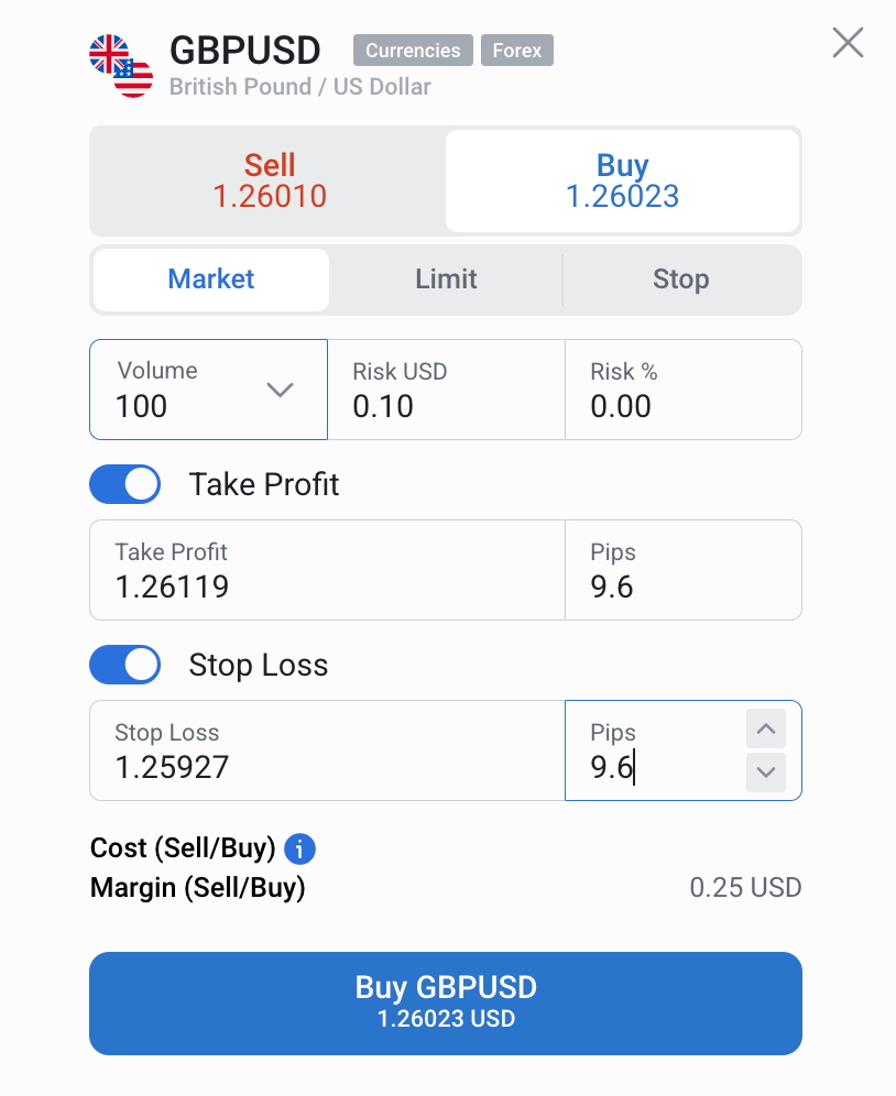 4. Set Take Profit and/or Stop Loss.