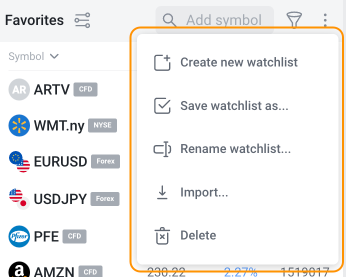2. Save watchlist as - creates a copy of the current watchlist under a new name