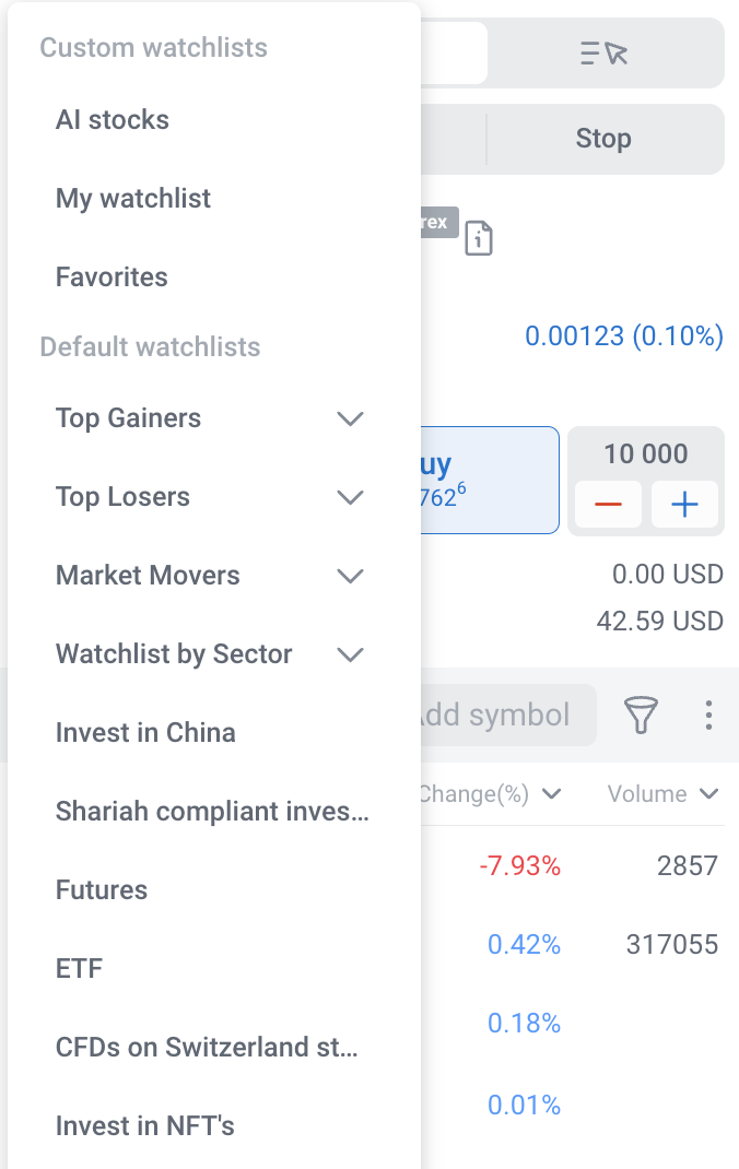 2. Drop-down list of watchlists - Custom / Default watchlists
