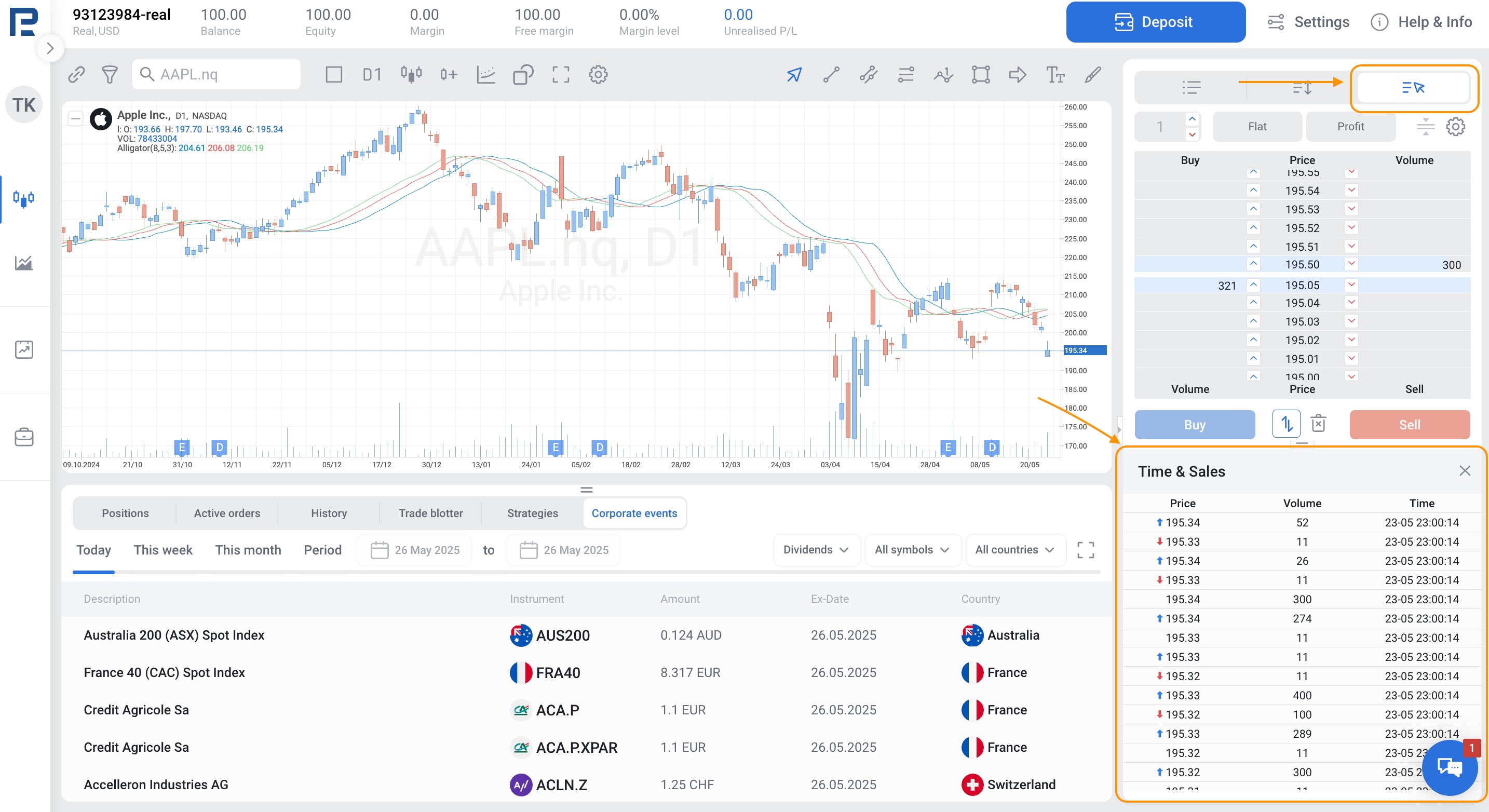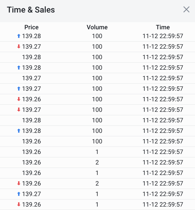 "Time & Sales" is available for some instruments (stocks and CFDs), but we do not provide it for currencies.