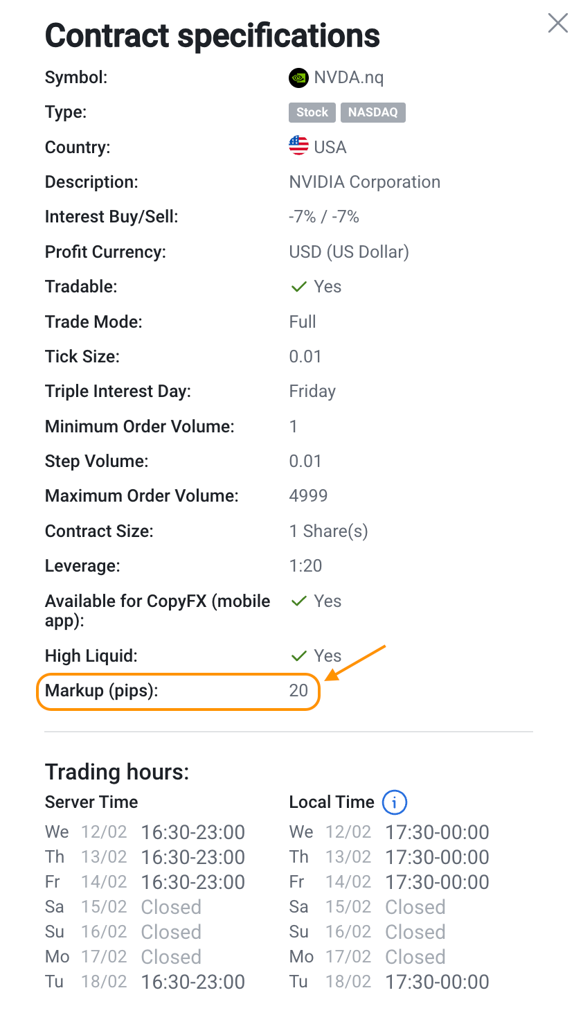 *The applied markup may exceed 0.15%, in particular due to possible rounding during the calculation process. Please refer to the financial instrument contract specifications for exact details on the applied markups.