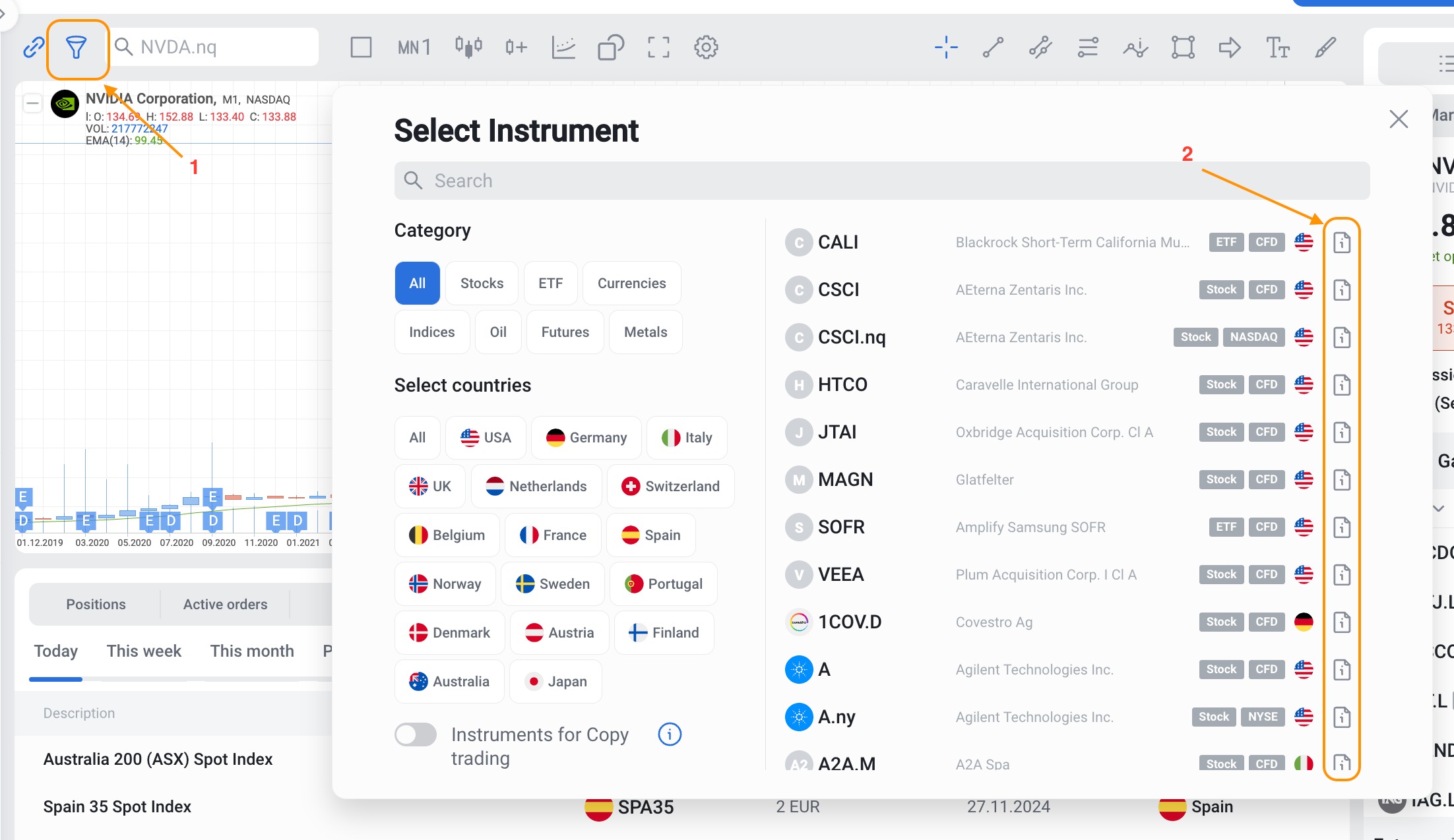 - Markup on market spread: Instead of charging separate commissions for each order, we include our fees in the market spread. We apply a small markup to the market spread, which tends toward 0.15%* of the instrument’s value. This markup is automatically included in the price you see when you trade.