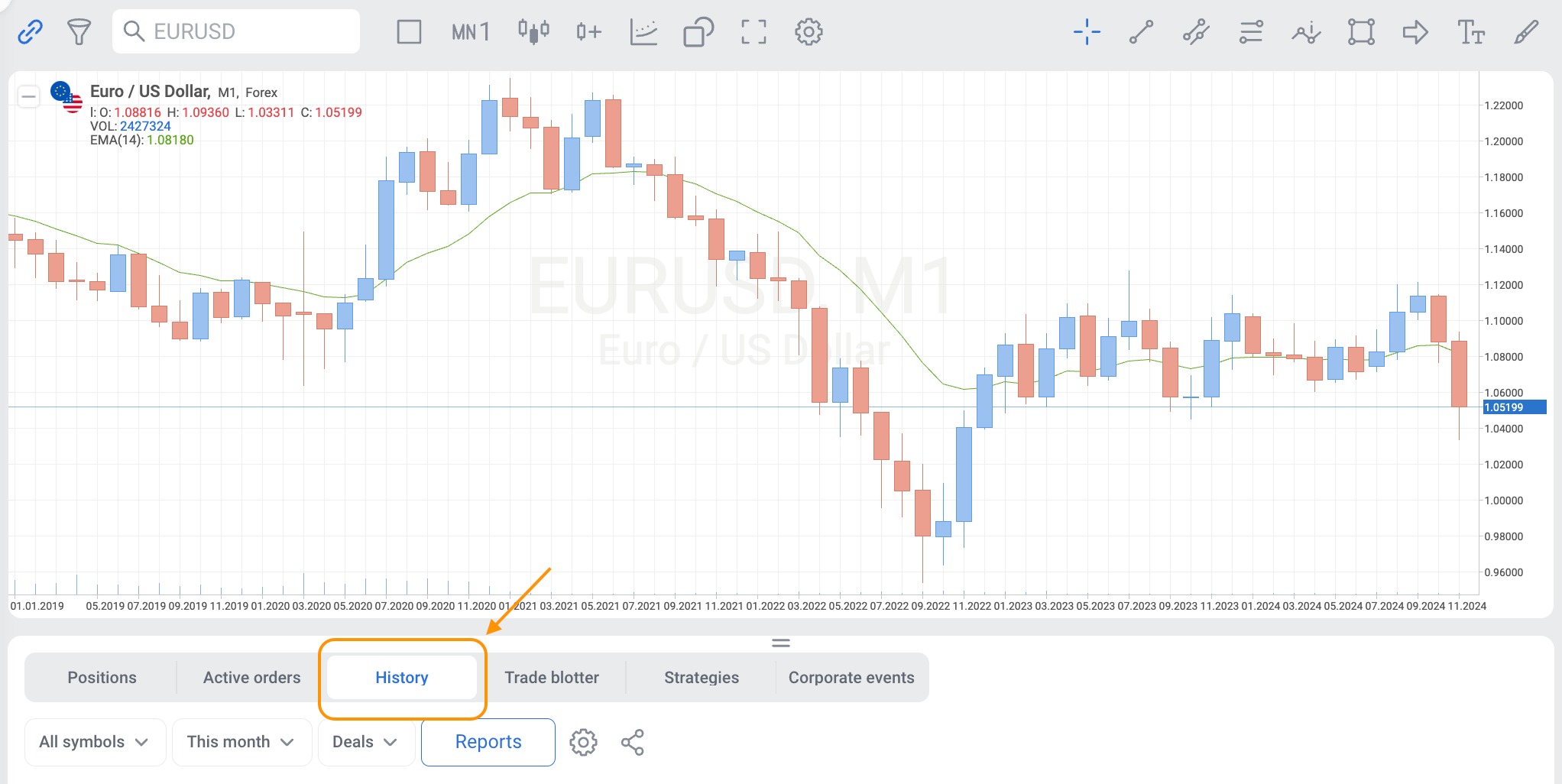 13. Find all the trades along with the balance transactions (Deposit/Withdraw), and cash dividends in the case of Stock trading, in the History tab in the account summary on the trading platform.