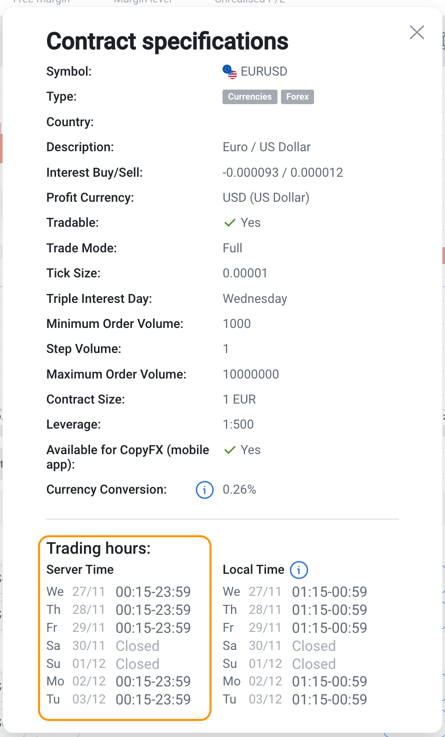 8. All orders are executed only during the instruments trading hours. Order management after and before trading sessions: place and modify Take Profit, Stop Loss, Limit, and Stop even when the market is closed. They will be executed after the trading session starts.