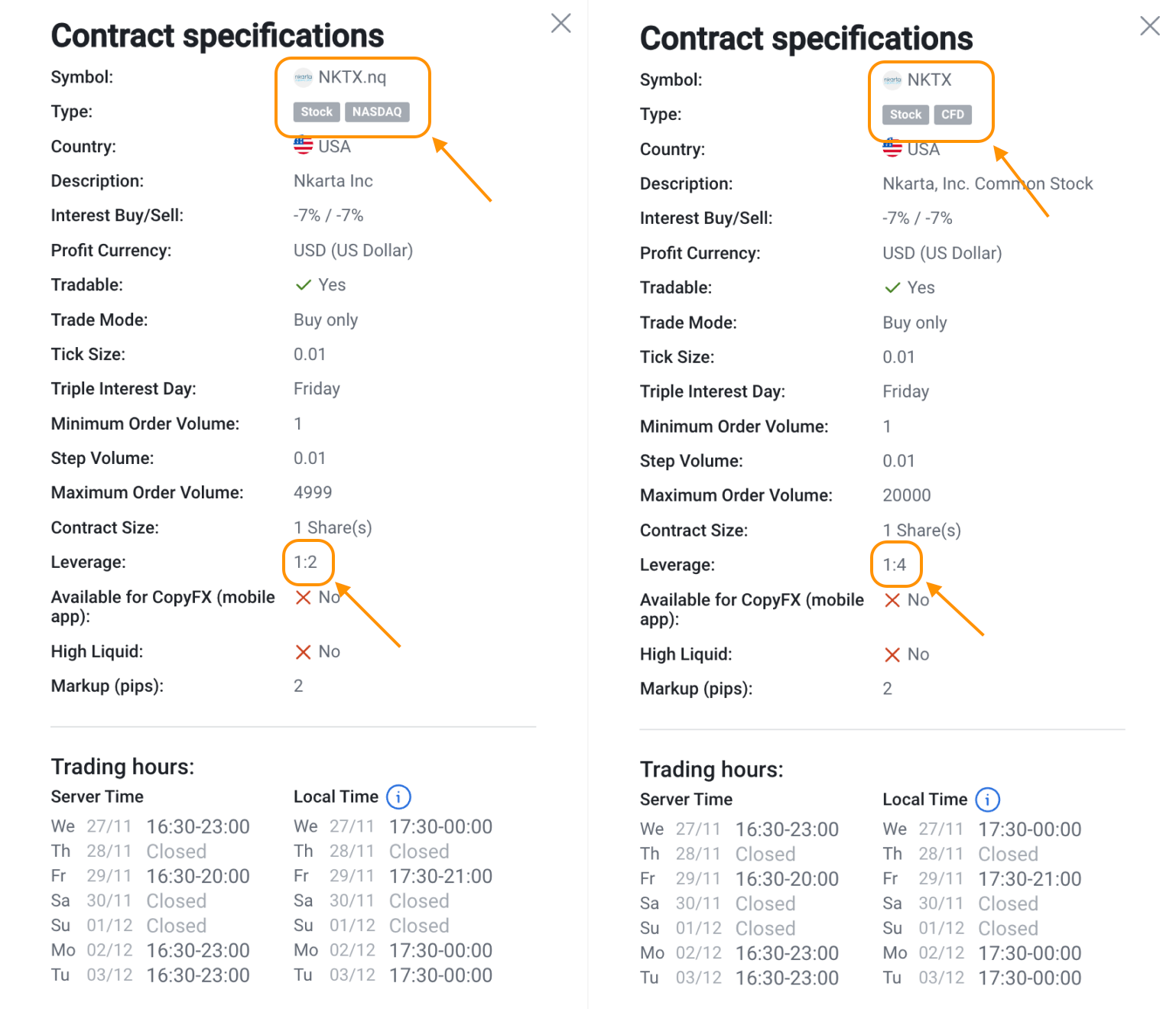 Leverage: Both stocks and CFDs can be traded with leverage. When trading CFDs, RoboMarkets typically offers higher leverage, especially for medium and low liquidity instruments compared to stocks.