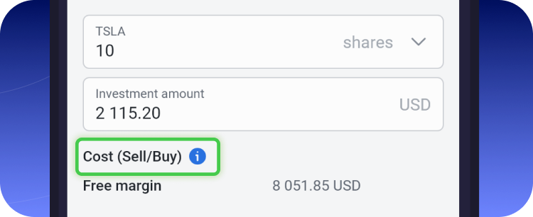 Instead of charging separate commissions for each order, we include our fees in the market spread. We apply a small markup to the market spread, which tends toward 0.15% of the instrument’s value. This markup is automatically included in the price you see when you trade. Read more about this in our article "Understanding the trading model with markup on spread".