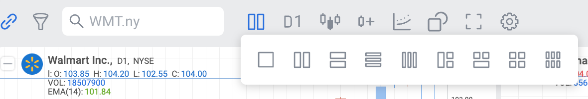 1. The button allows you to link all charts so you see the same financial instrument in all charts at the same time.