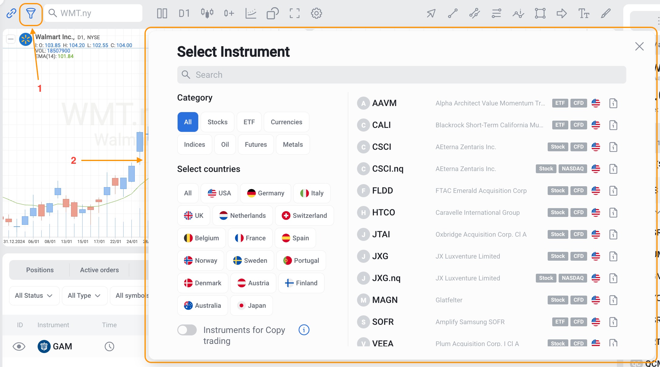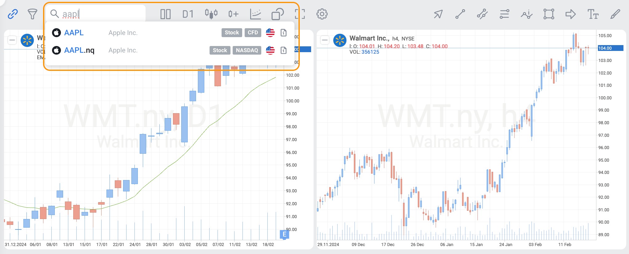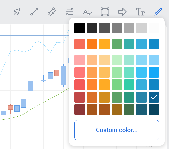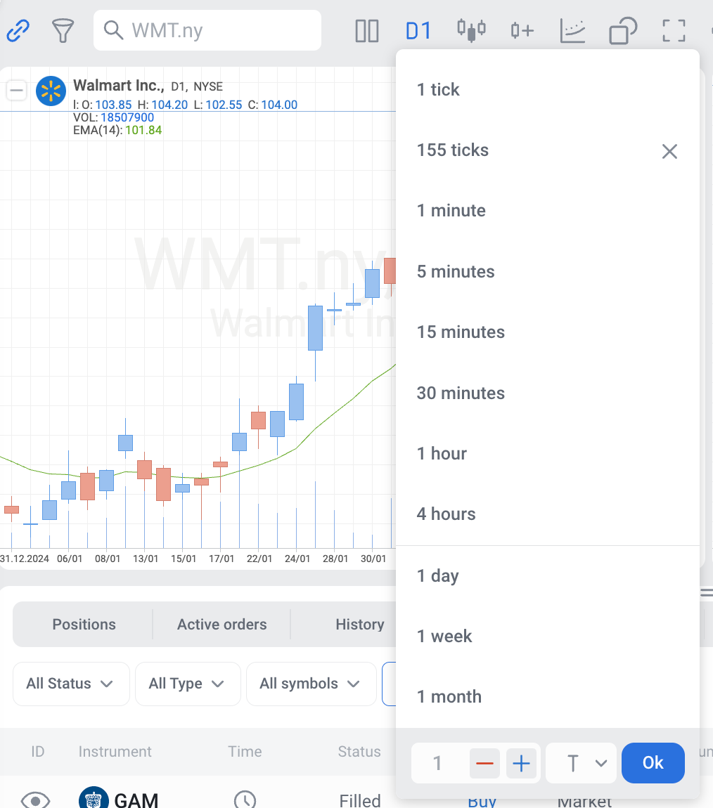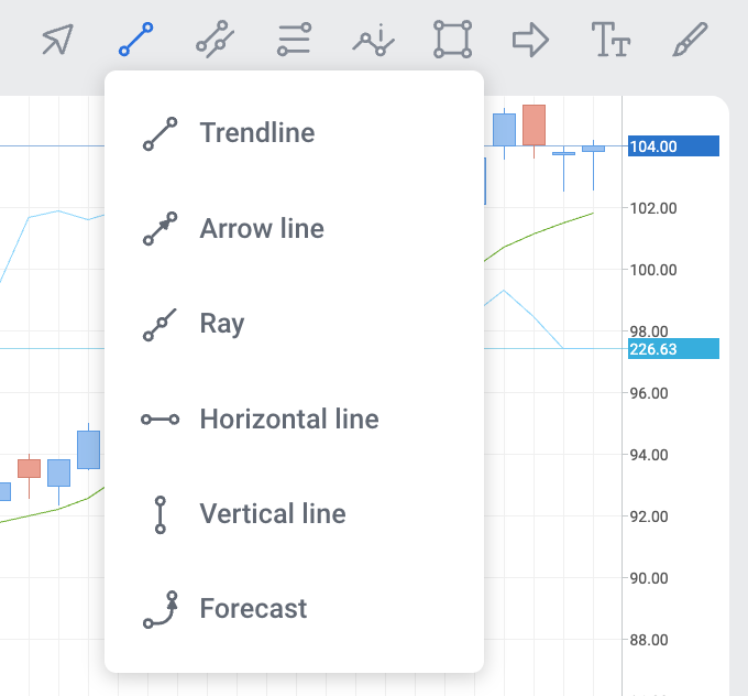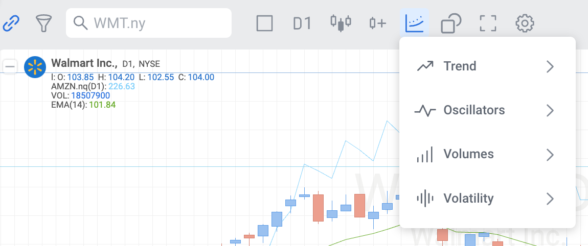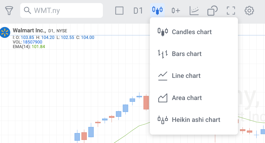 5. Chart type (candlesticks, bars, lines, areas, Heikin-Ashi).