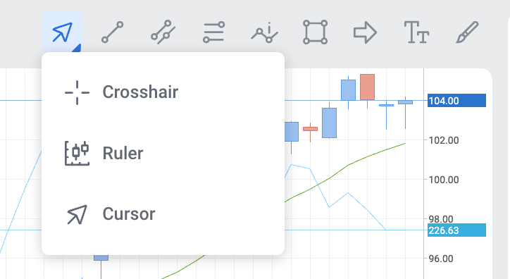 11. Cursor, ruler, or crosshair. Click on the small triangle in the lower right corner of the button to choose.