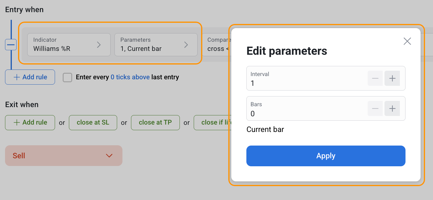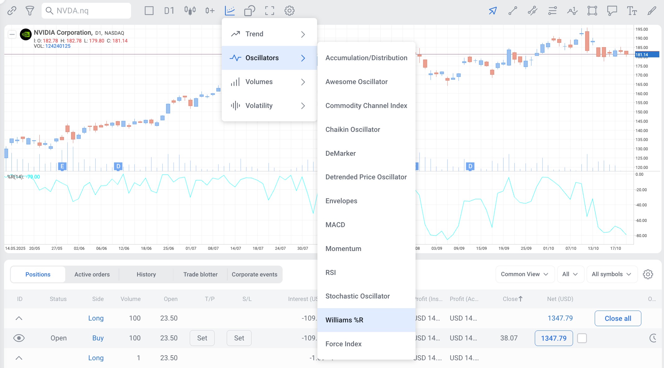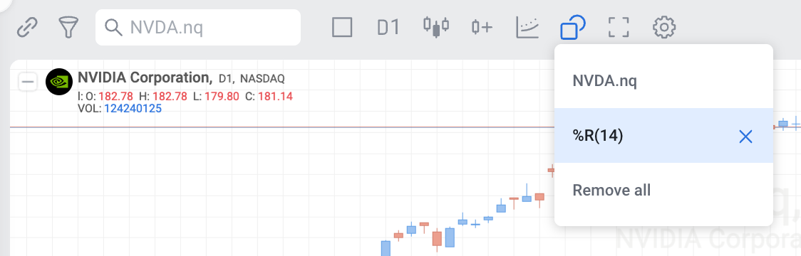 Williams %R can be used both separately and together with other indicators in the RoboBuilder.