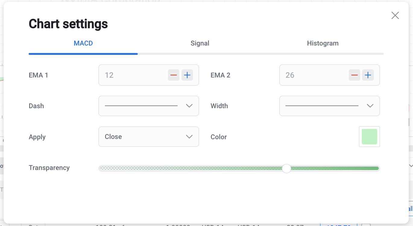 Settings in the chart