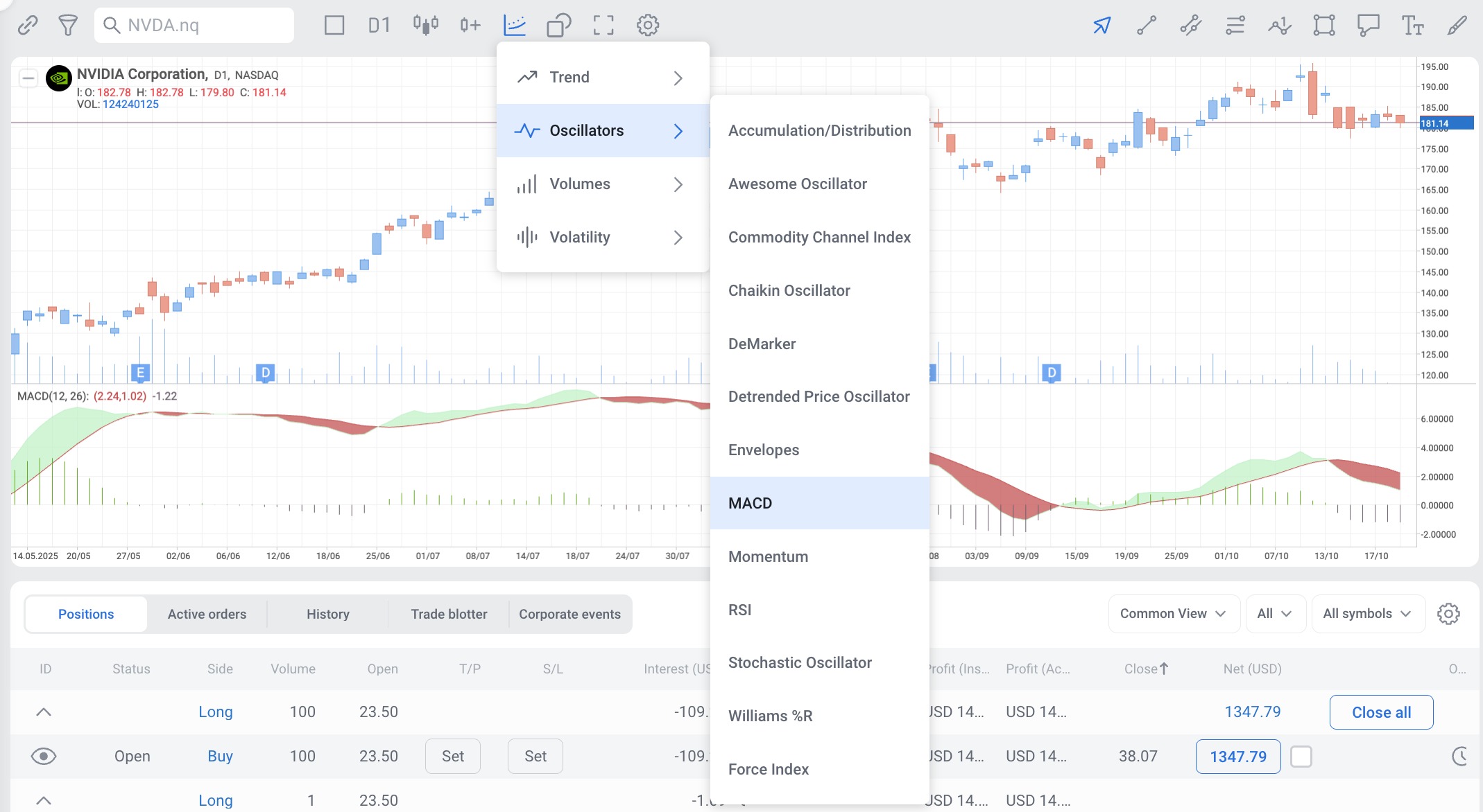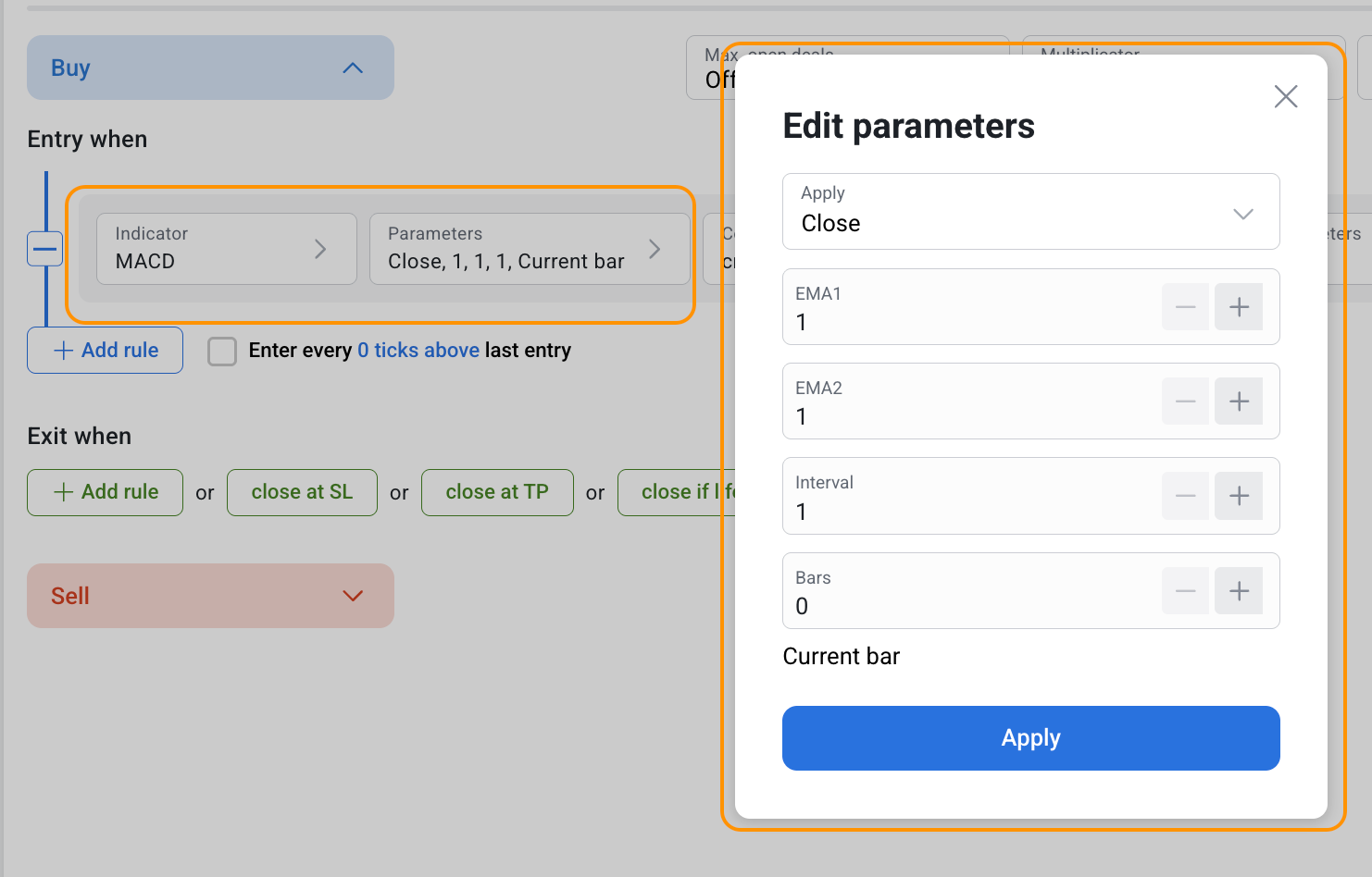 MACD can be used both separately and together with other indicators in the RoboBuilder.