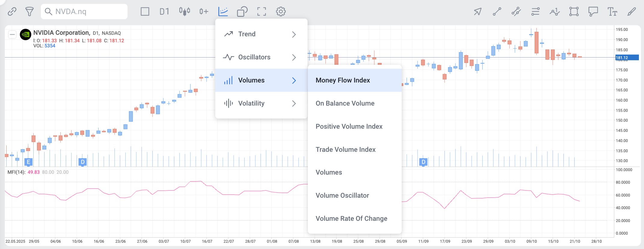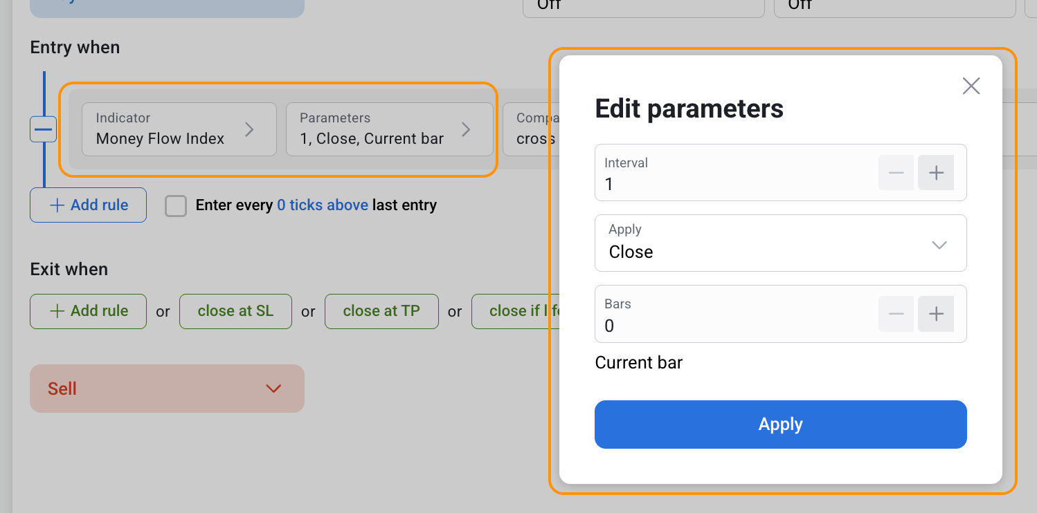 Money Flow Index (MFI) can be used both separately and together with other indicators in the RoboBuilder.