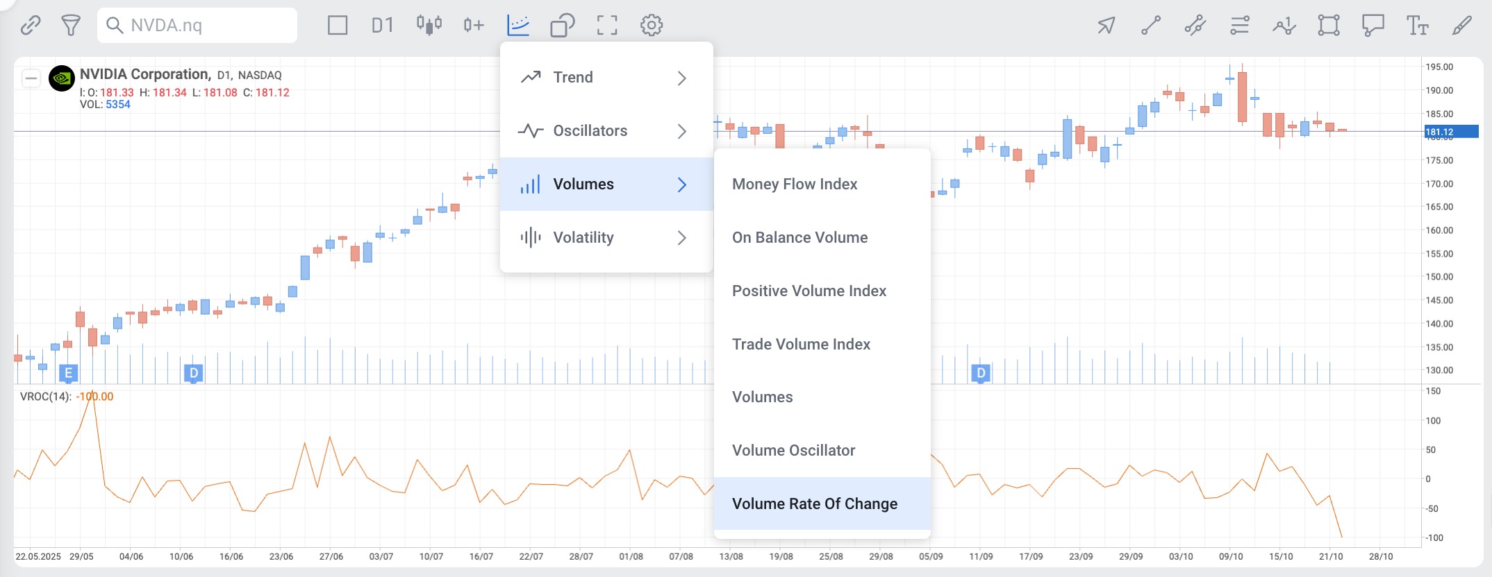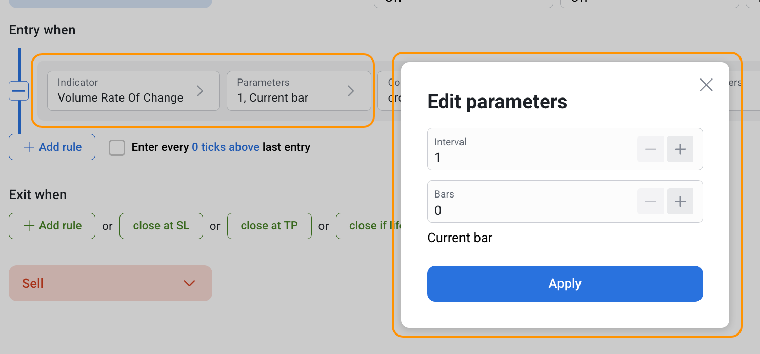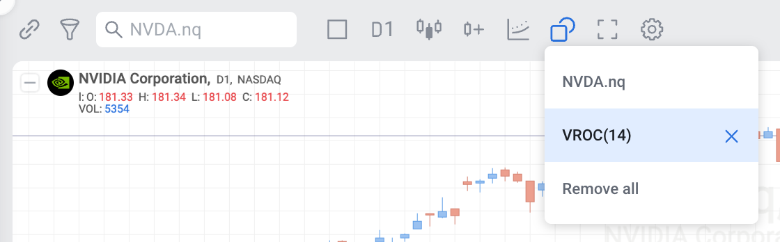 Volume Rate Of Change can be used both separately and together with other indicators in the RoboBuilder.