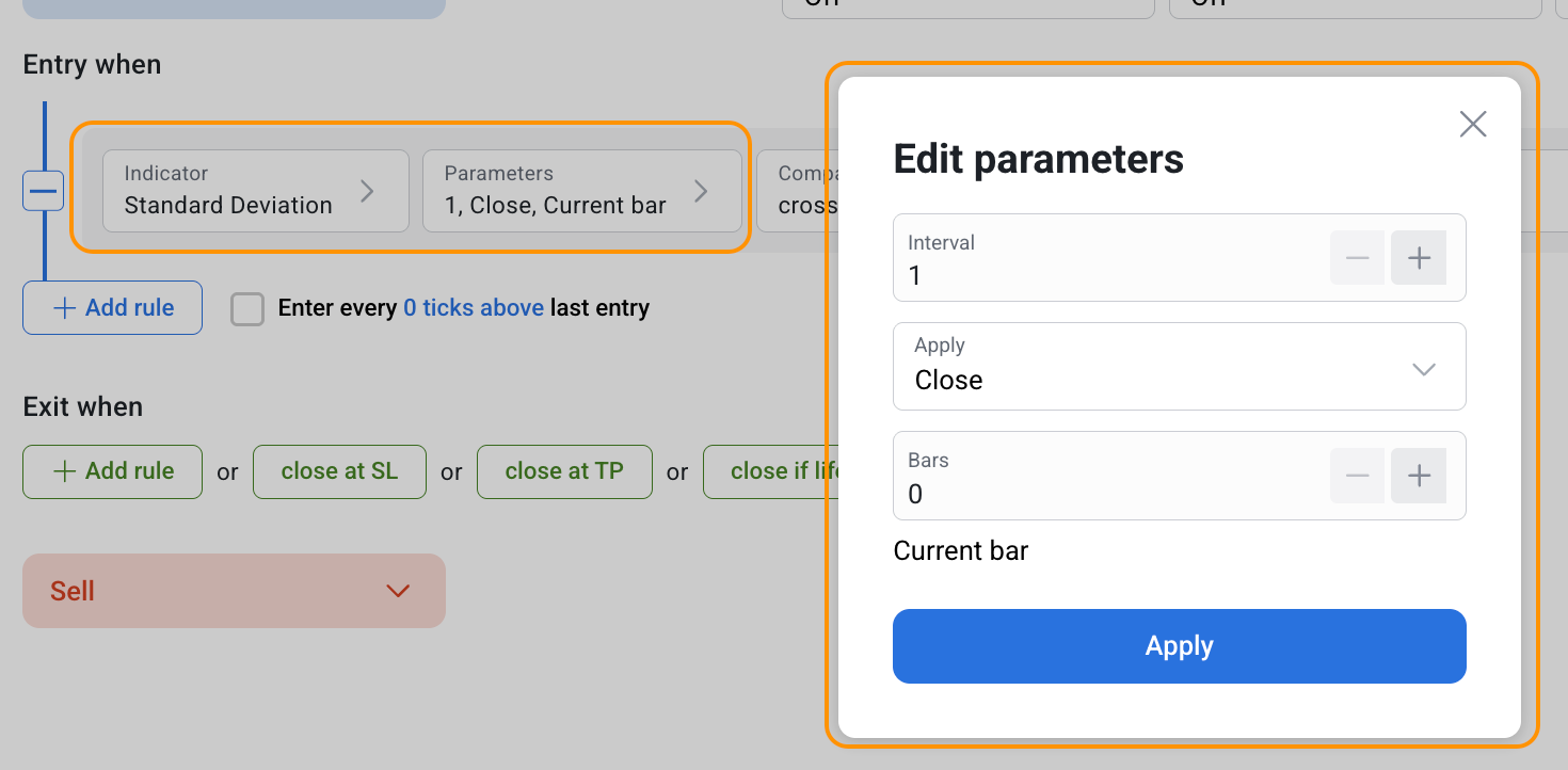 Standard Deviation can be used both separately and together with other indicators in the RoboBuilder.